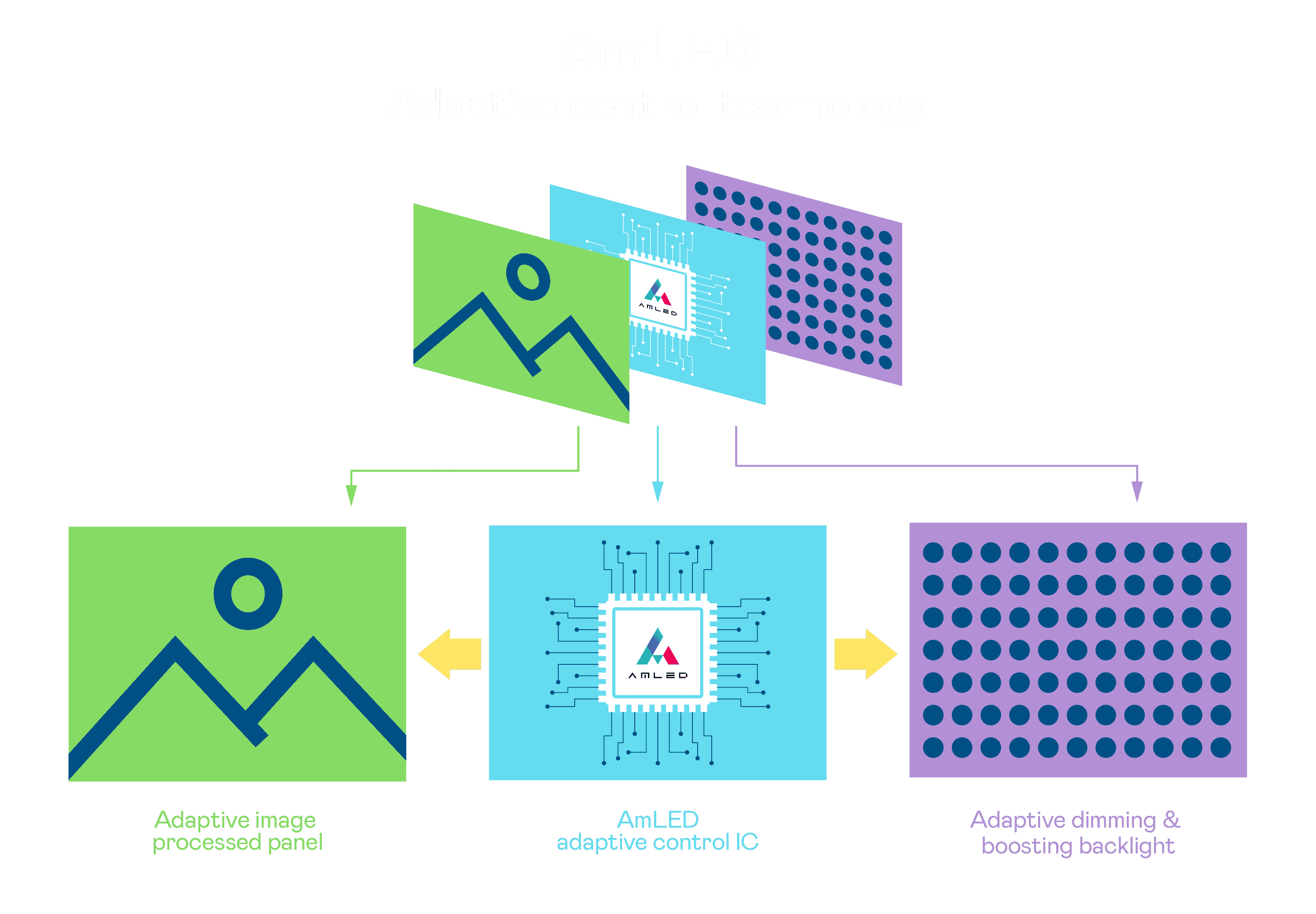 AmLED 具备更省电与低蓝光特性。。。与一般的 LED 背光显示技术相比,,由于 AmLED 常时处于局部调光状态,,其功耗仅有前者的 50% 左右,,同时 AmLED 还具备低蓝光特性,,,满足长时间使用的护眼需求。。