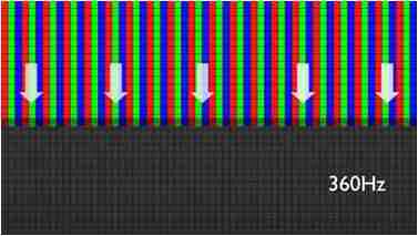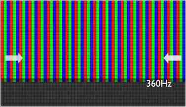 传统液晶驱动是从左到右单向进行,,,,在画面更新速度愈来越愈快的情况下,,位于驱动线路末端的右下角区域,,,画素的闸极来不及在短时间内获得足够电压,,无法显示出正确的颜色资讯。。。